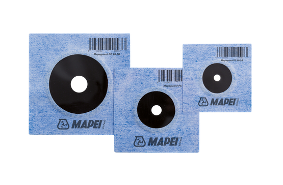 Vedações flexíveis do sistema MAPEGUARD WP SYSTEM para a impermeabilização de tubagens e descargas passantes.