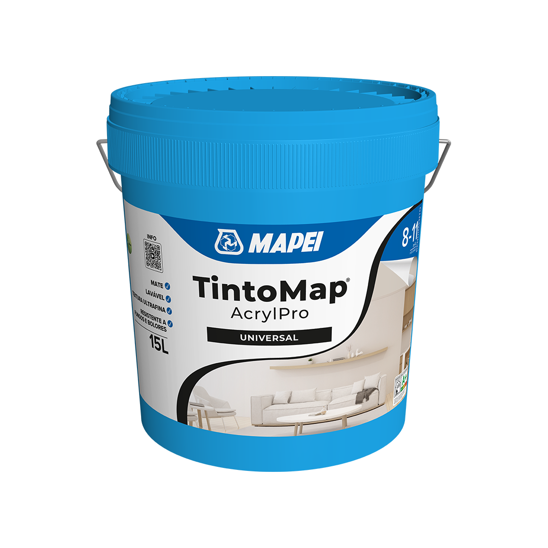 Pintura para superfícies interiores novas ou já pintadas. TintoMap AcrylPro é ideal para suportes interiores tais como, rebocos cimentícios, gessos sintéticos, placas de gessos cartonado, desde que devidamente preparados.