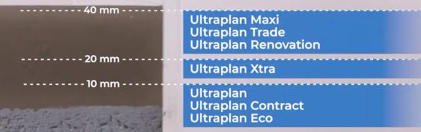 Misturado com água, Ultraplan Xtra transforma-se numa argamassa fluida e de fácil aplicação, perfeitamente autonivelante, com elevada força de aderência ao suporte e secagem ultrarrápida.