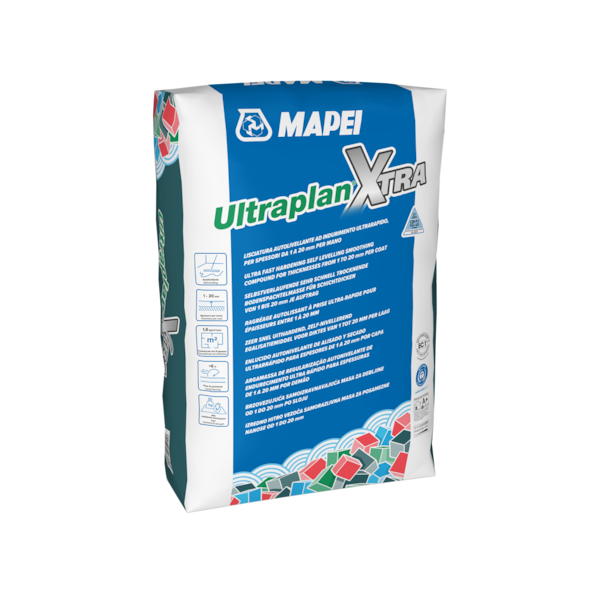 Ultraplan Xtra é um pó cinzento constituído por cimentos especiais de presa e hidratação rápidas, com areia de sílica selecionada e calibrada, resinas e adjuvantes especiais, preparado de acordo com uma fórmula desenvolvida nos Laboratórios de Investigação da MAPEI.