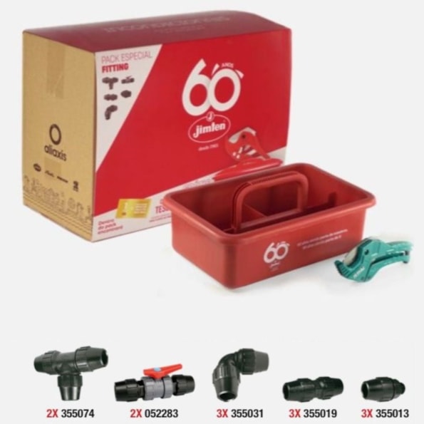 Pack Especial, composto por 2Un Tês 32 + 2 Passadores 32 + 3 Curvas 32 + 3 Uniões Retas 32 + 3 Uniões Mistas 32x1 Macho + 1 Cesto + 1 Tesoura.