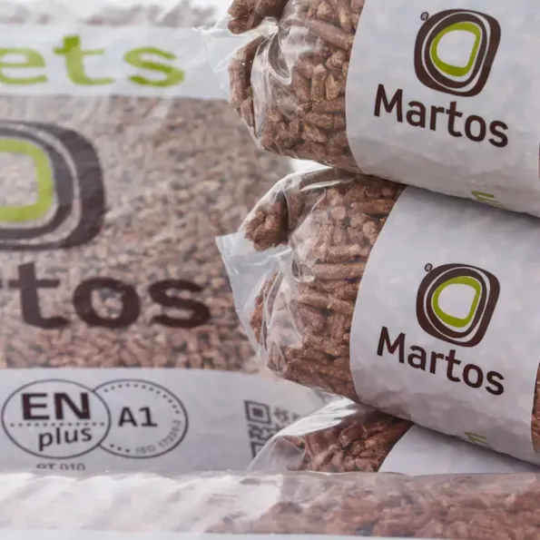 A matéria-prima é obtida de forma sustentável a partir da unidade de serração do Grupo Martos onde são gerados os subprodutos de origem florestal, utilizados na produção dos pellets. Matéria-prima classificada na categoria 1.2.1 da ISO 17225-1 como - Subprodutos da indústria transformadora da madeira designadamente: serrim e estilha.