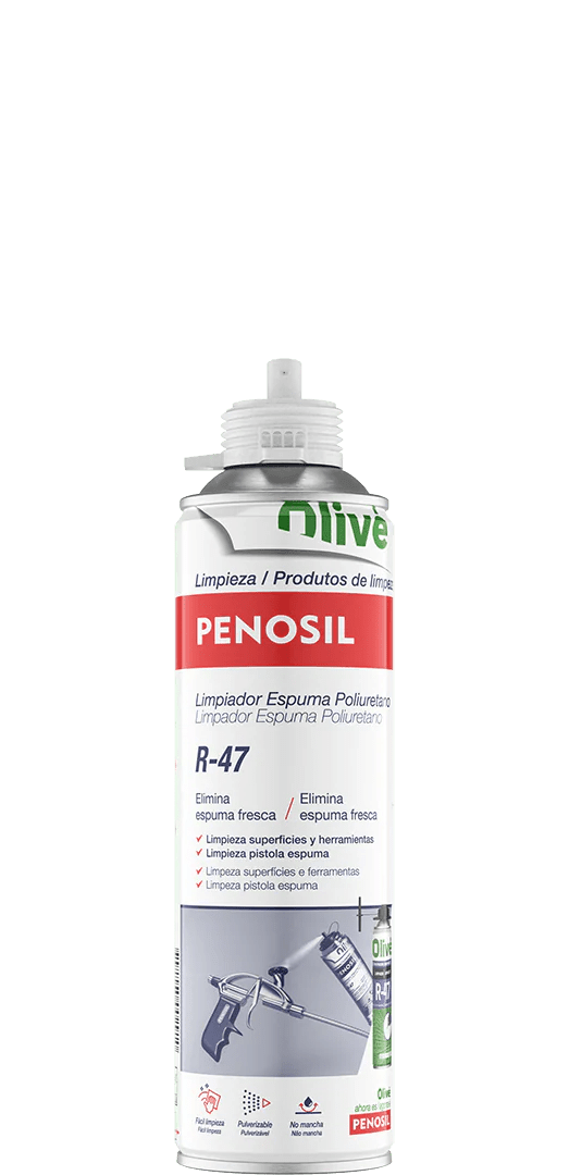 PENOSIL Limpador espuma poliuretano 929 é adequado para a limpeza de espuma de poliuretano ainda fresca nas superfícies onde se fez a aplicação e para a limpeza de ferramentas e da pistola de aplicação da espuma.