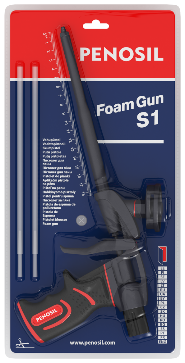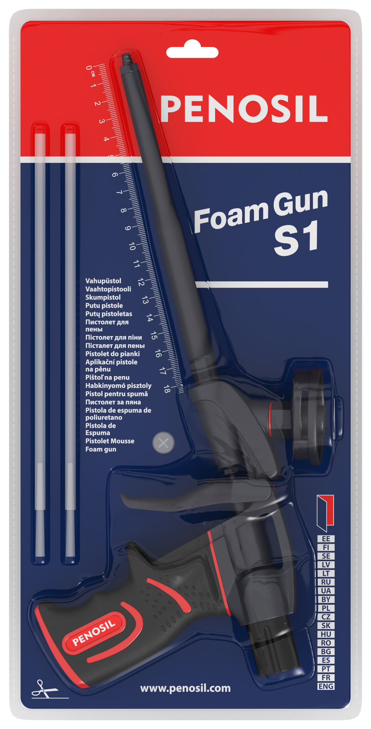 PENOSIL Pistola Emblistada S1, pistola de espuma profissional que permite uma dosagem precisa para uma boa estrutura da espuma.