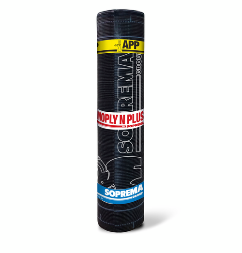Moply N Plus FP 3 kg é uma membrana de impermeabilização de betume plastomérico APP, com flexibilidade a baixas temperaturas (-10 °C), com armadura de feltro de poliéster reforçado com fibra de vidro e acabamento gofrado com filme termo fusível na face inferior e acabamento liso na face superior.