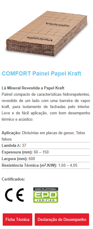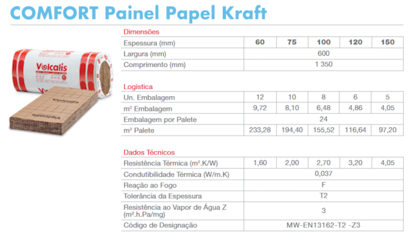 Painel compacto, revestido de um lado com uma barreira de vapor em papel kraft, fácil de manusear e com toque suave.