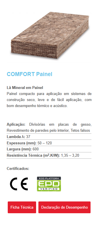 Volcalis COMFORT é um excelente isolamento térmico e acústico para aplicação em todo o tipo de edifícios.